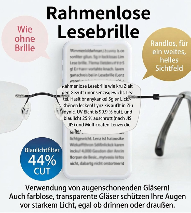 Ultraleichte randlose phototropische Lesebrille