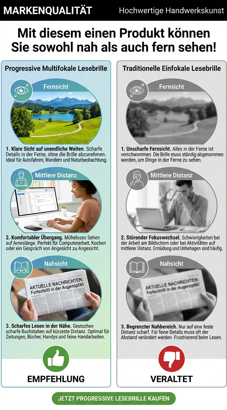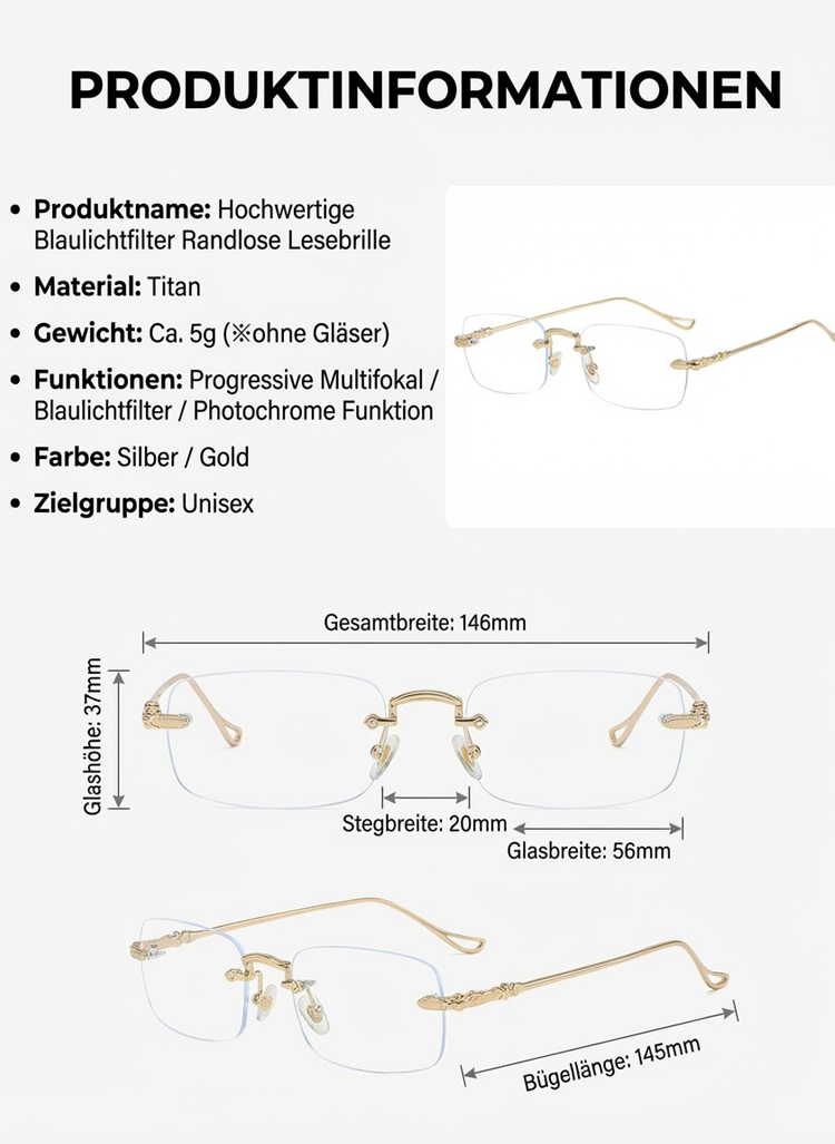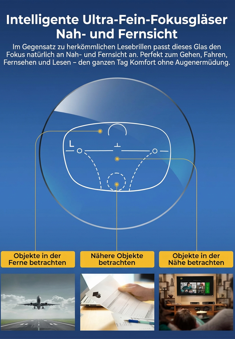 Perfekte Sicht: Intelligente Gleitsicht (0-1000 dpt) für alle Distanzen! ☁️ Leichtigkeit: Nur 5g leichter Titan-Rahmen – hypoallergen & bequem. 💎 🛡️ Augenschutz: 99% Blaulichtfilter & automatische Selbsttönung. ☀️